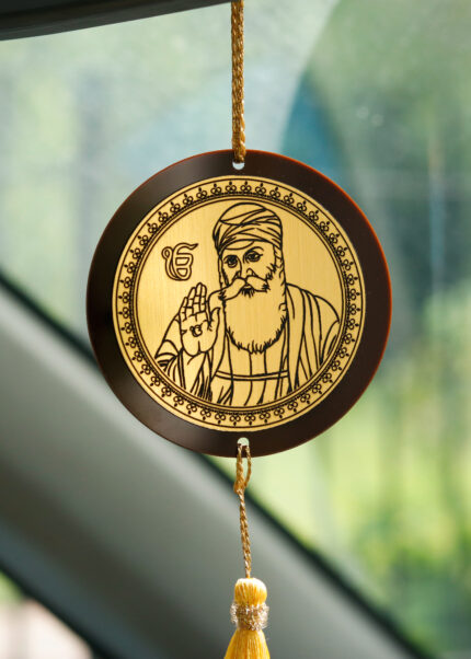 Sikh Car Hanging | Guru Gobind Singh Ji & Khanda Sahib | Golden Acrylic with Tassel