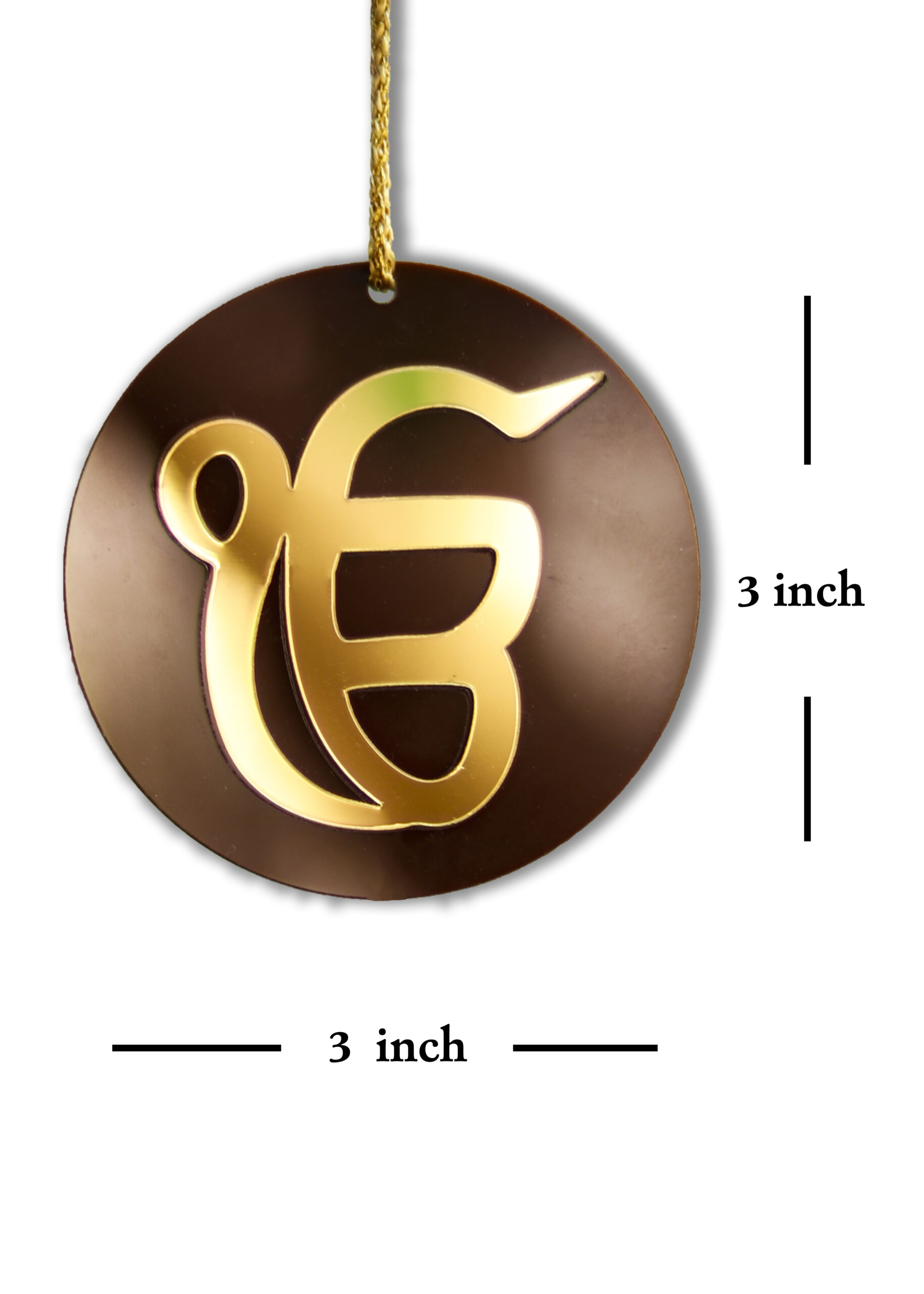 Made from premium acrylic with a golden finish, this ornament is durable yet lightweight. Its compact 3×3 inch size makes it ideal for rearview mirrors, while the included cord and tassel add a traditional touch.